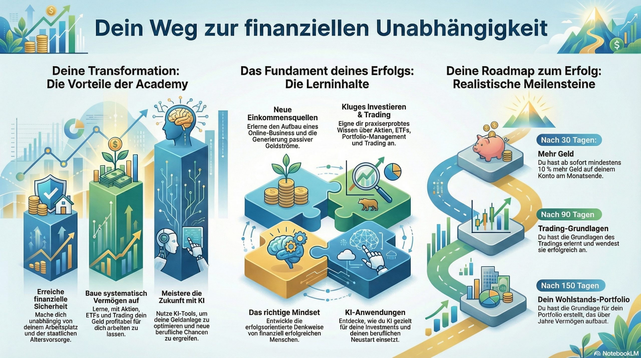 Passiver Geldfluss Academy - Aktien, Trading und KI - Online-Lernplattform zum Erreichen der zeitlichen und finanziellen Unabhängigkeit!