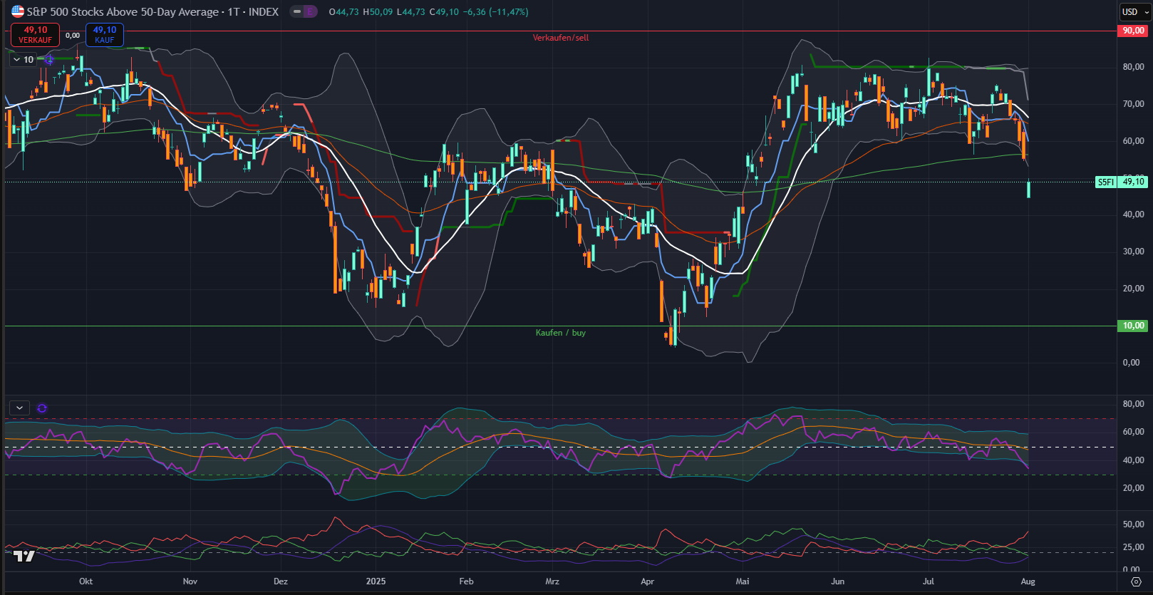 Anteil Aktien im S&P 500 über dem SMA 50 - 01.08.2025
